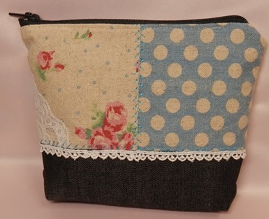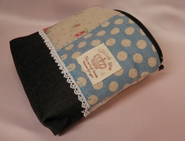 布合わせのポーチ、ブルー系