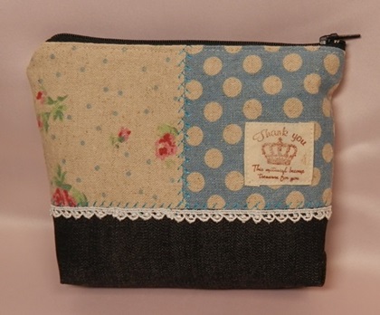 ポーチ類布合わせのポーチ、ブルー系