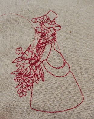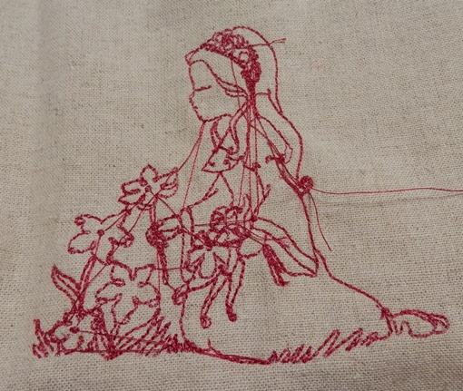 今回の図案は色の確認が面倒なので 一色刺しゅうで済ませてしまいました。