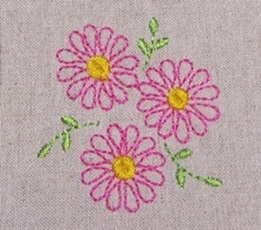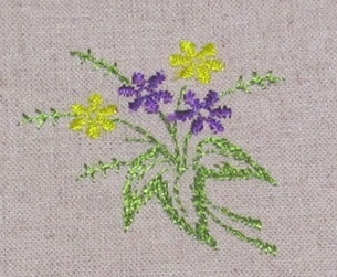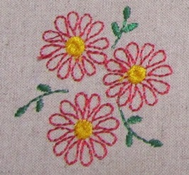 ミシン刺繍 麻綿混のホワイト布に刺繍