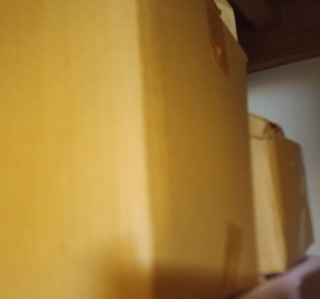 押し入れの中に布のぎっしりと入った段ボールが眠っています