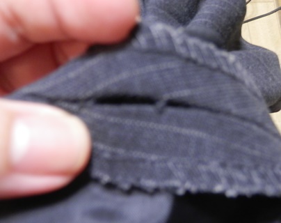 お判りでしょうが 濃いグレーの生地ですが 白糸で縫ってます。
