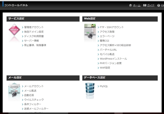 「FTPアカウント」「パスワード」は上↑↑の「コントロールパネル画面A」に写っているのweb設定で確認できます