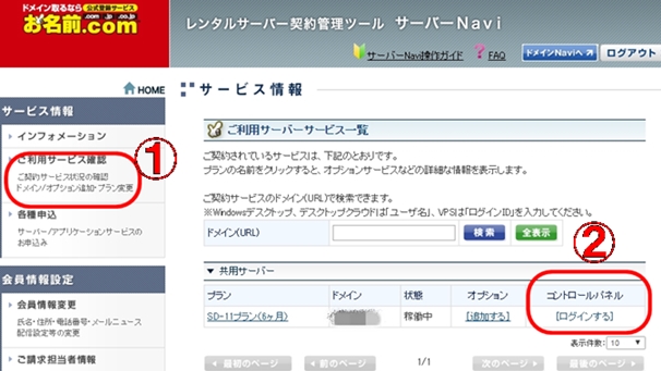私のレンタルサーバーはお名前コムです。