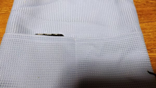 ポケットがあると便利なのでつけたのですがココでも布をけちってしまいました