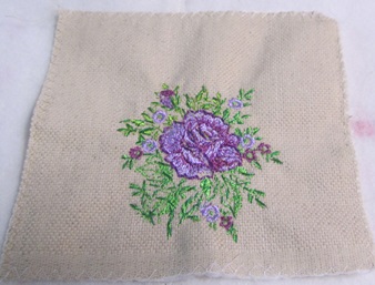 バラの紫にくすんだ紫2色を使ってしまい、ぼんやりしたので濃い紫色で手刺しゅうの縁取りをしました。